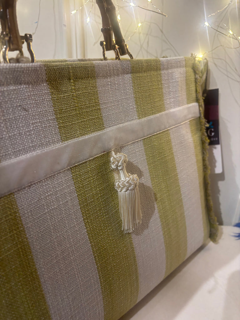 BORSA GRACE CANVAS COTONE RIGHE VERDE